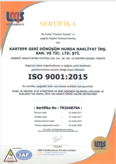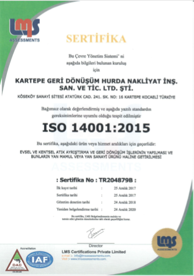 ISO 9001:2015 Pdf İçin Tıklayınız. ISO 14001-2015 Pdf İçin Tıklayınız. ISO OHSAS: 18001-2007 Pdf İçin Tıklayınız. Tehlikeli Atık Taşıma Lisansı için Tıklayınız. Çevre İzin ve Lisans Belgesi Pdf İçin Tıklayınız. TAT Belgesi için Tıklayınız.